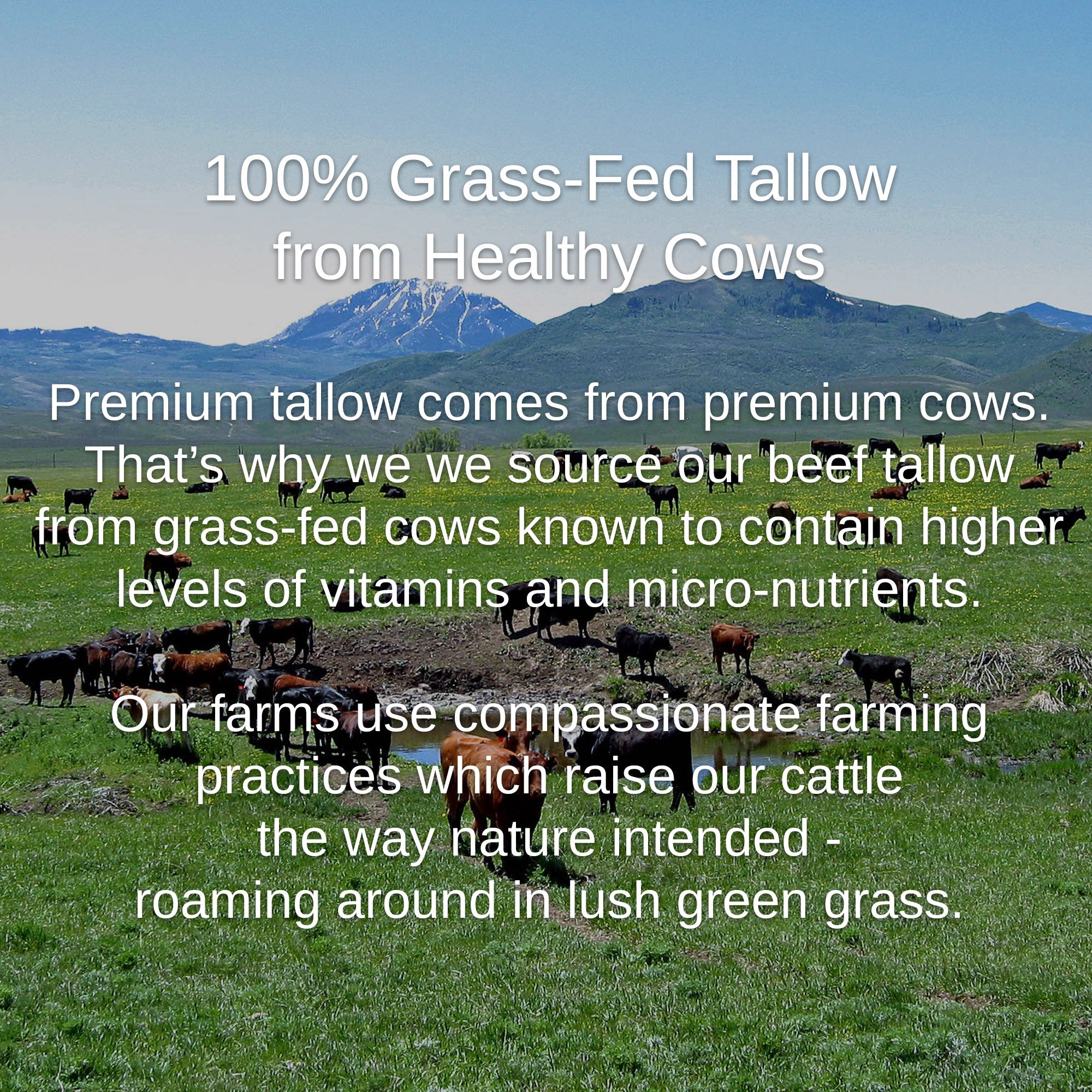 100% Grass-Fed & Finished Beef Tallow sourced from small family farms is packed with Vitamins A, K, D, E, Choline and powerful antioxidants, all in their natural state.