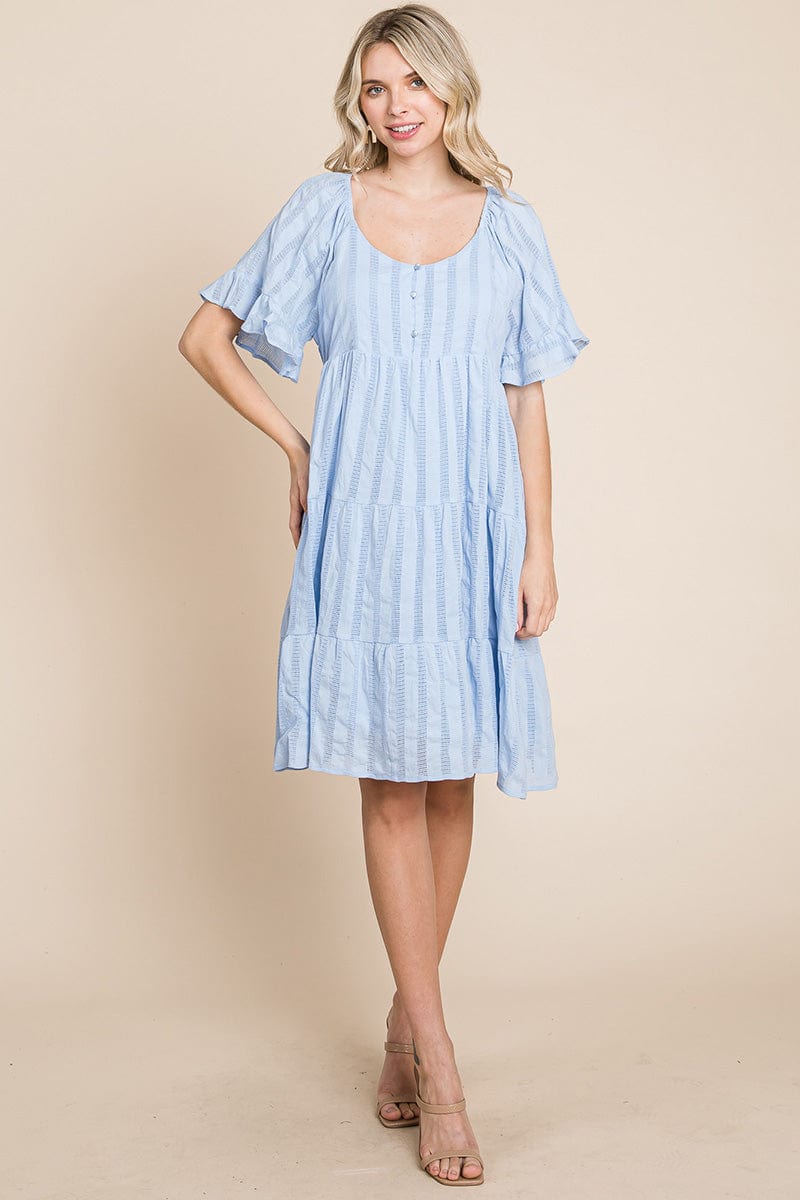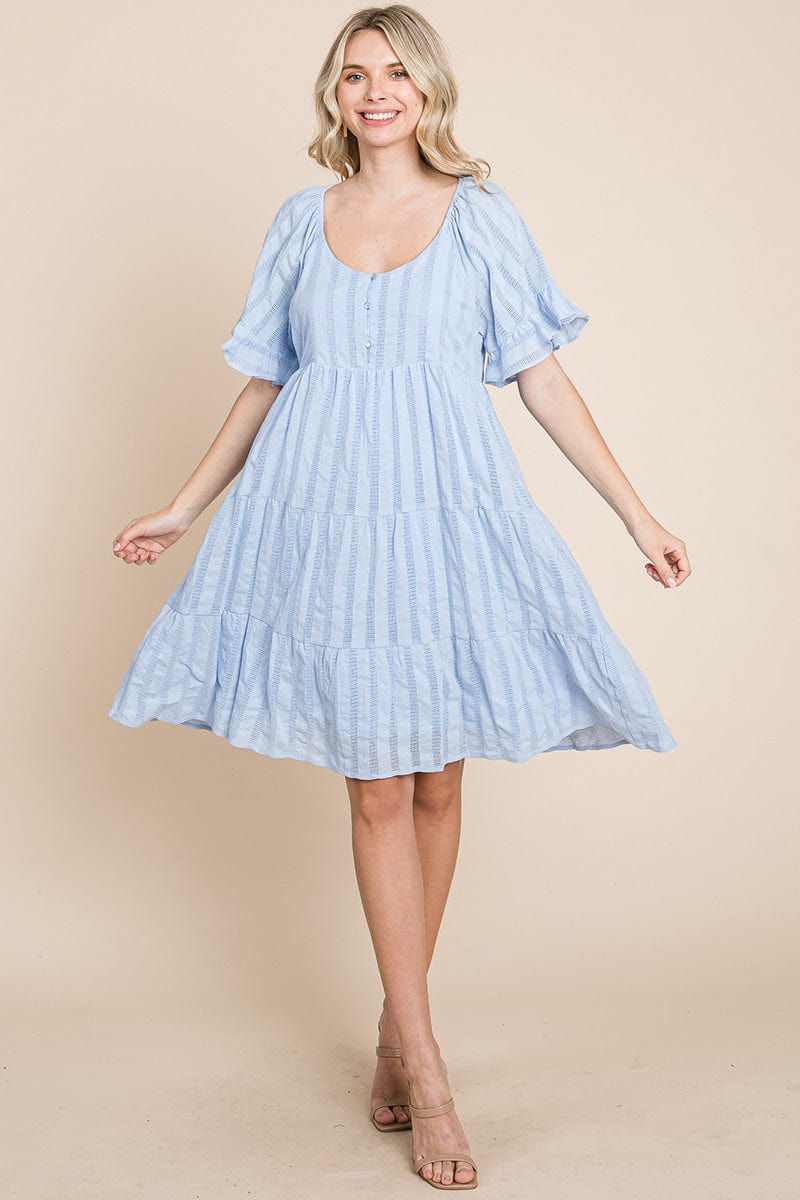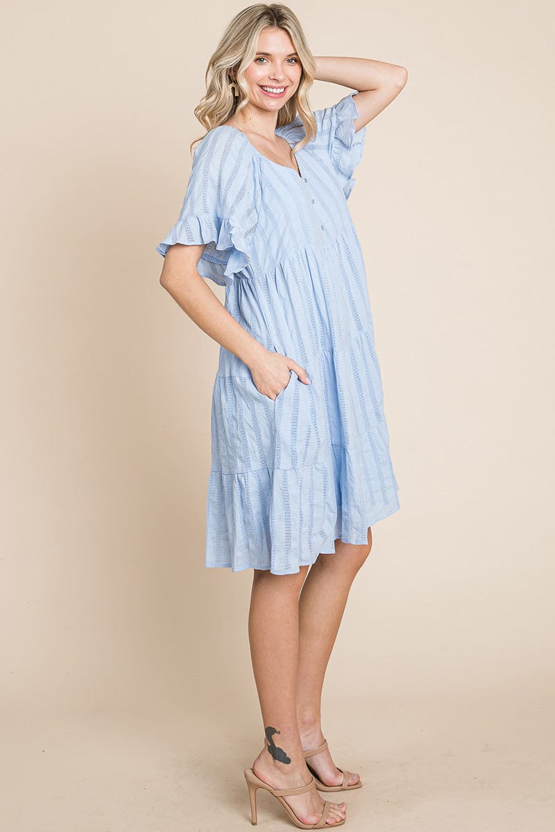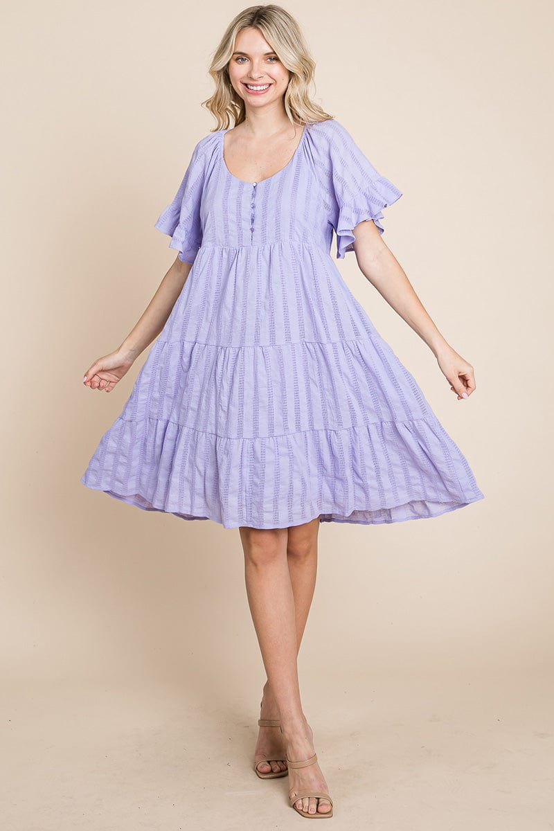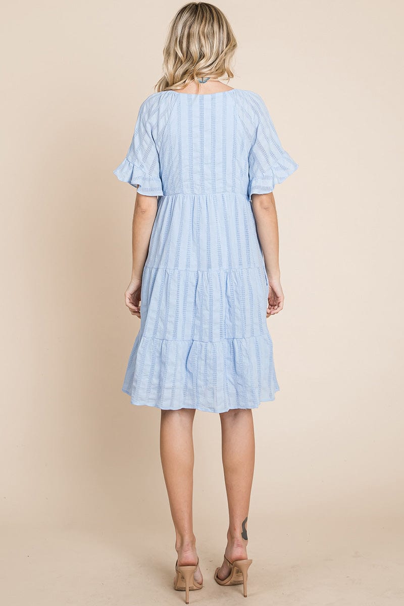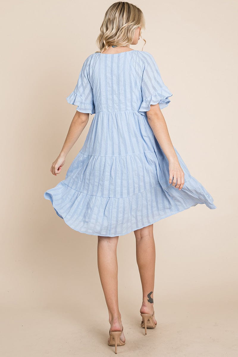 Stripe Textured Tiered Flutter Sleeve Cotton Dress by RolyPoly Apparel