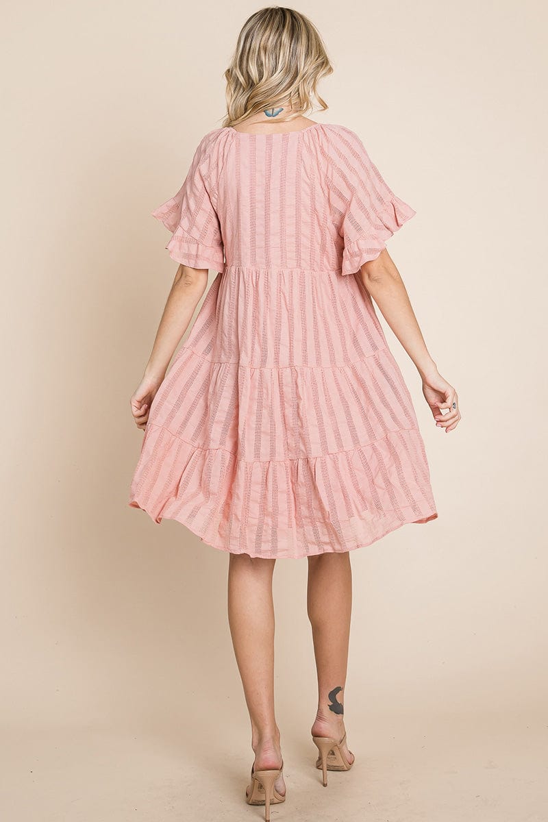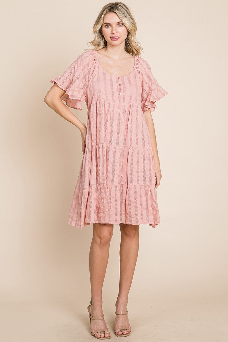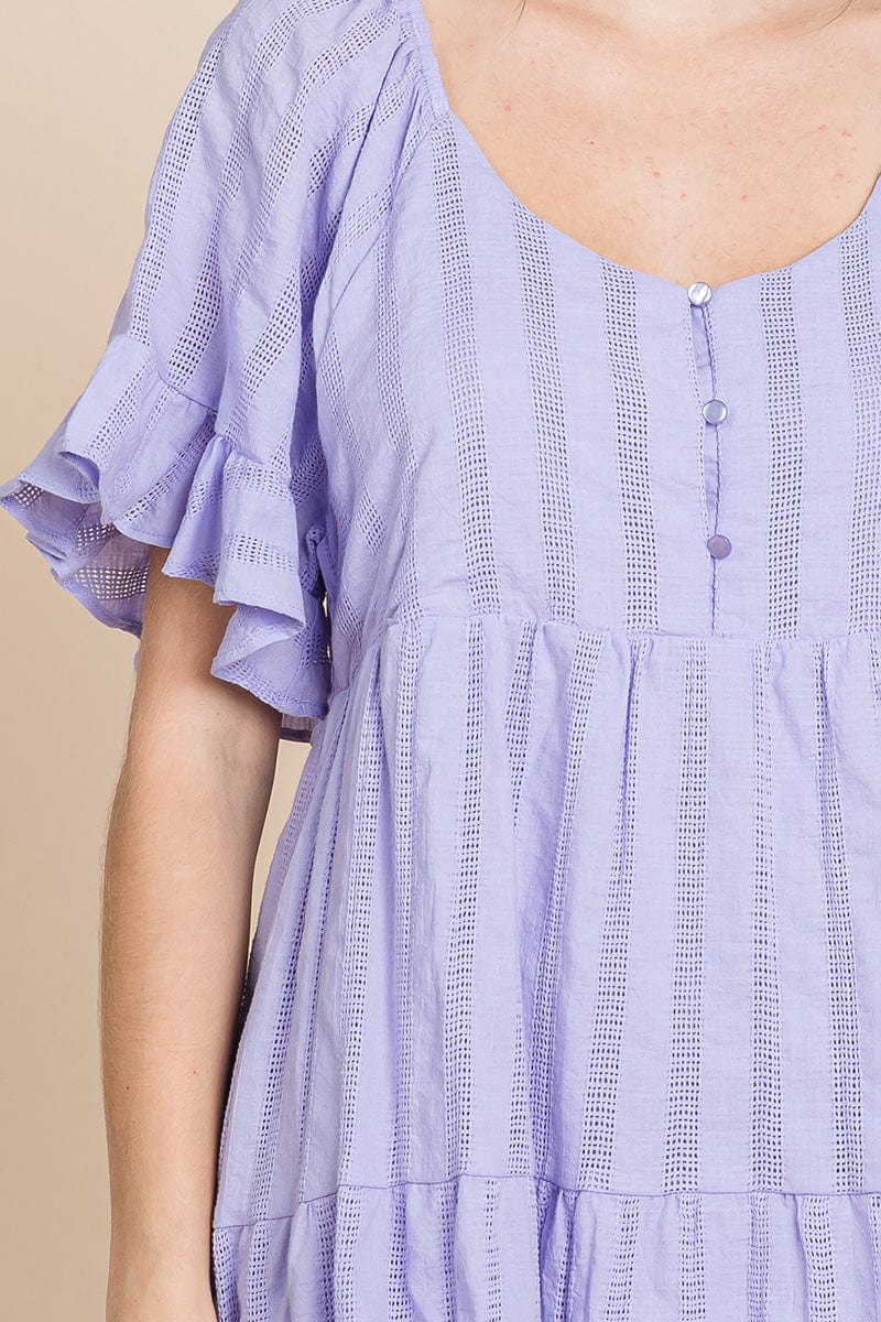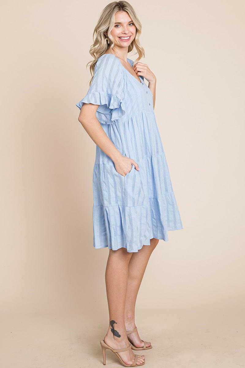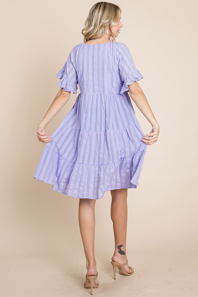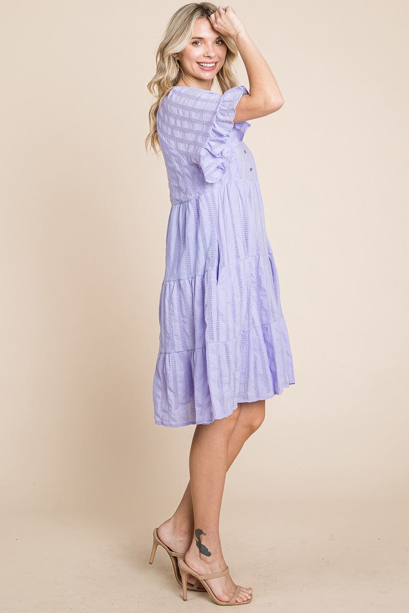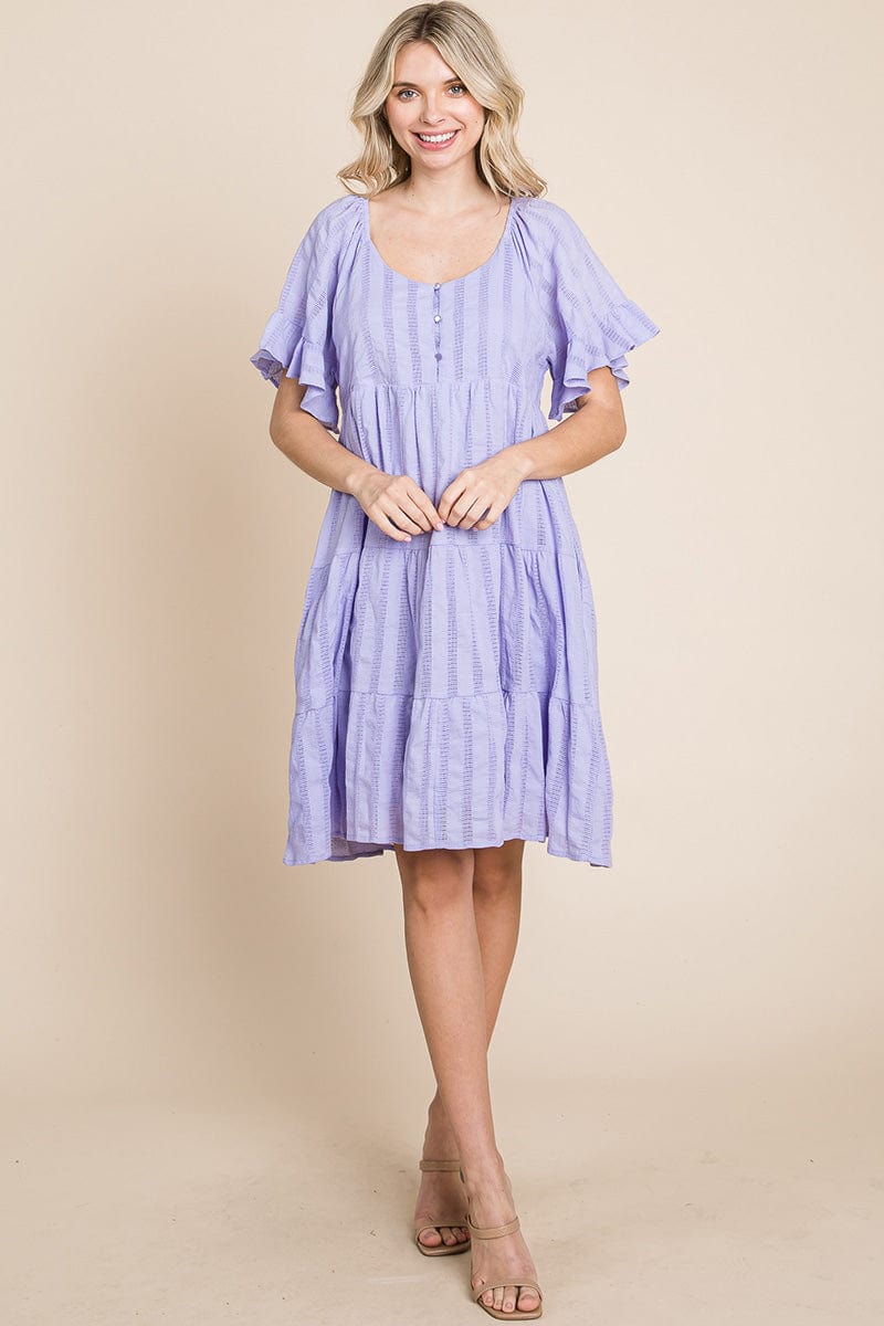 Stripe Textured Tiered Flutter Sleeve Cotton Dress by RolyPoly Apparel
