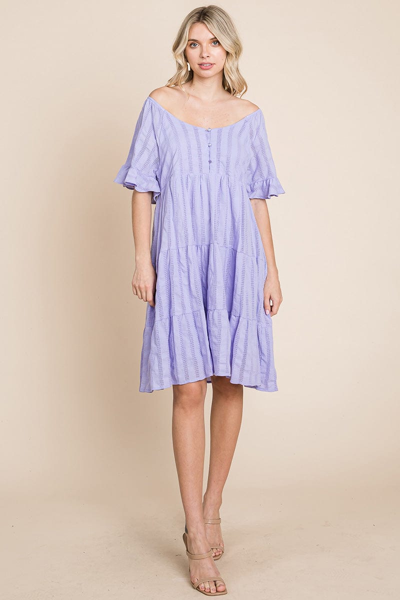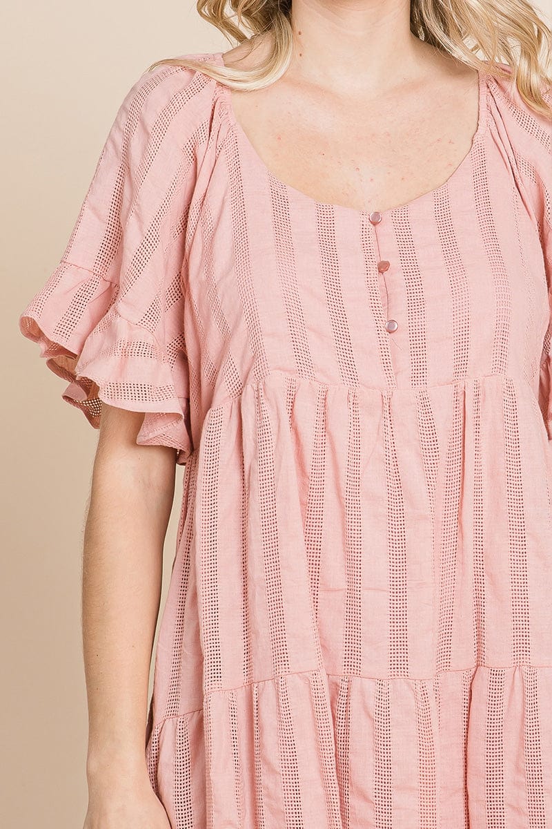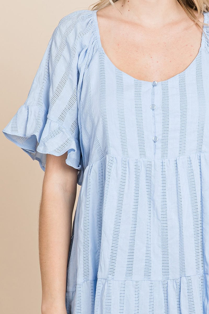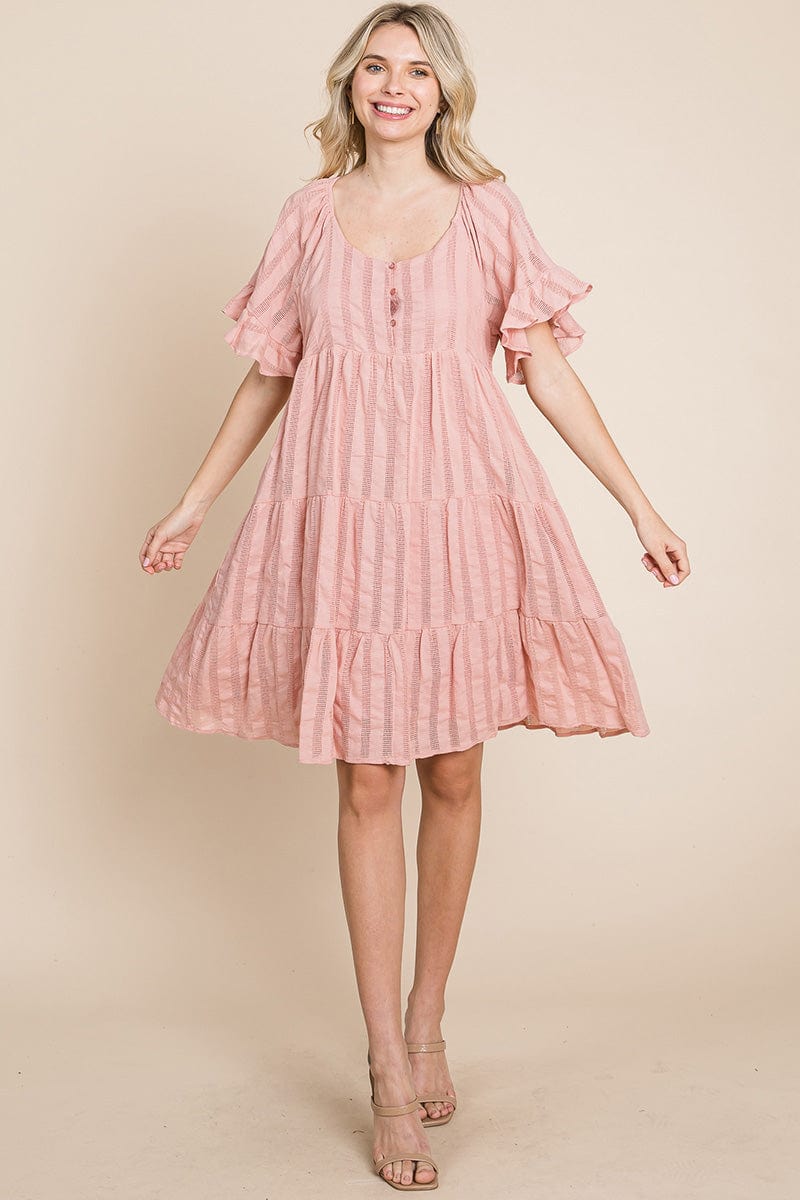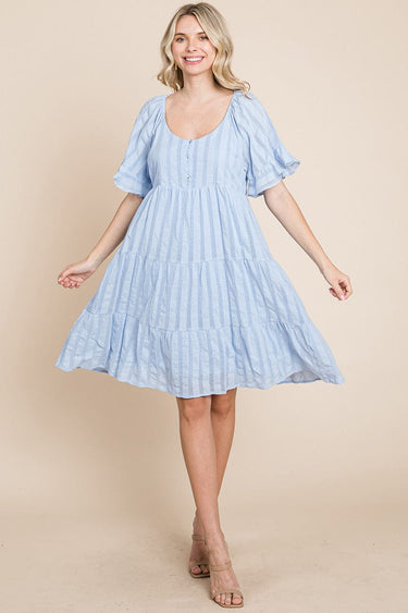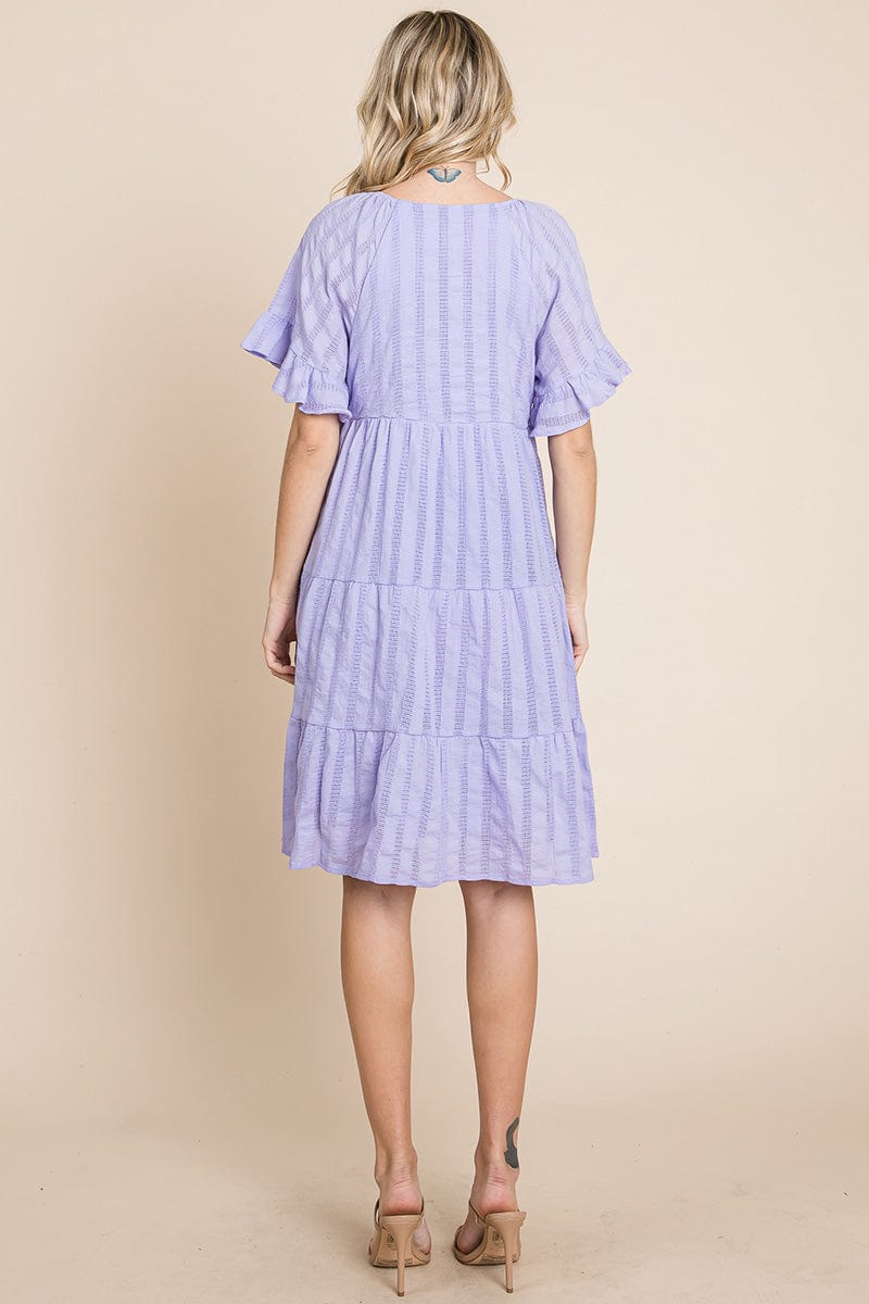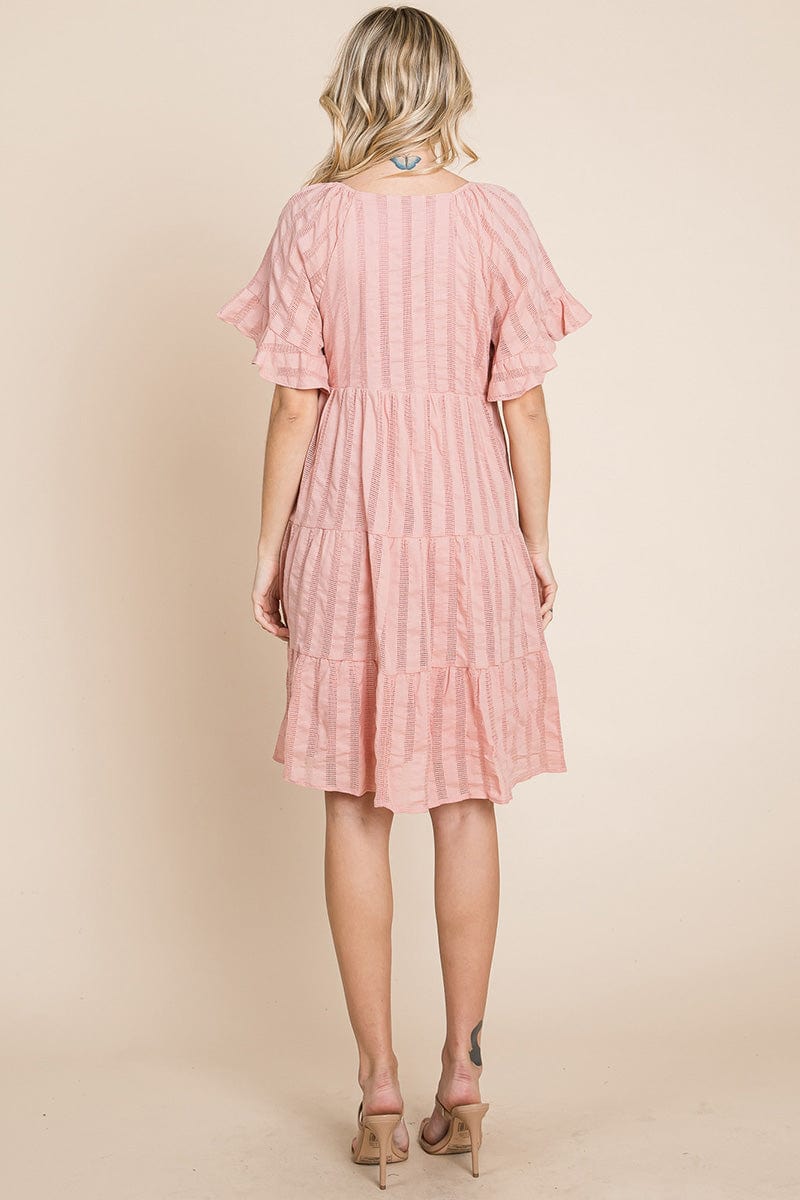 Stripe Textured Tiered Flutter Sleeve Cotton Dress by RolyPoly Apparel