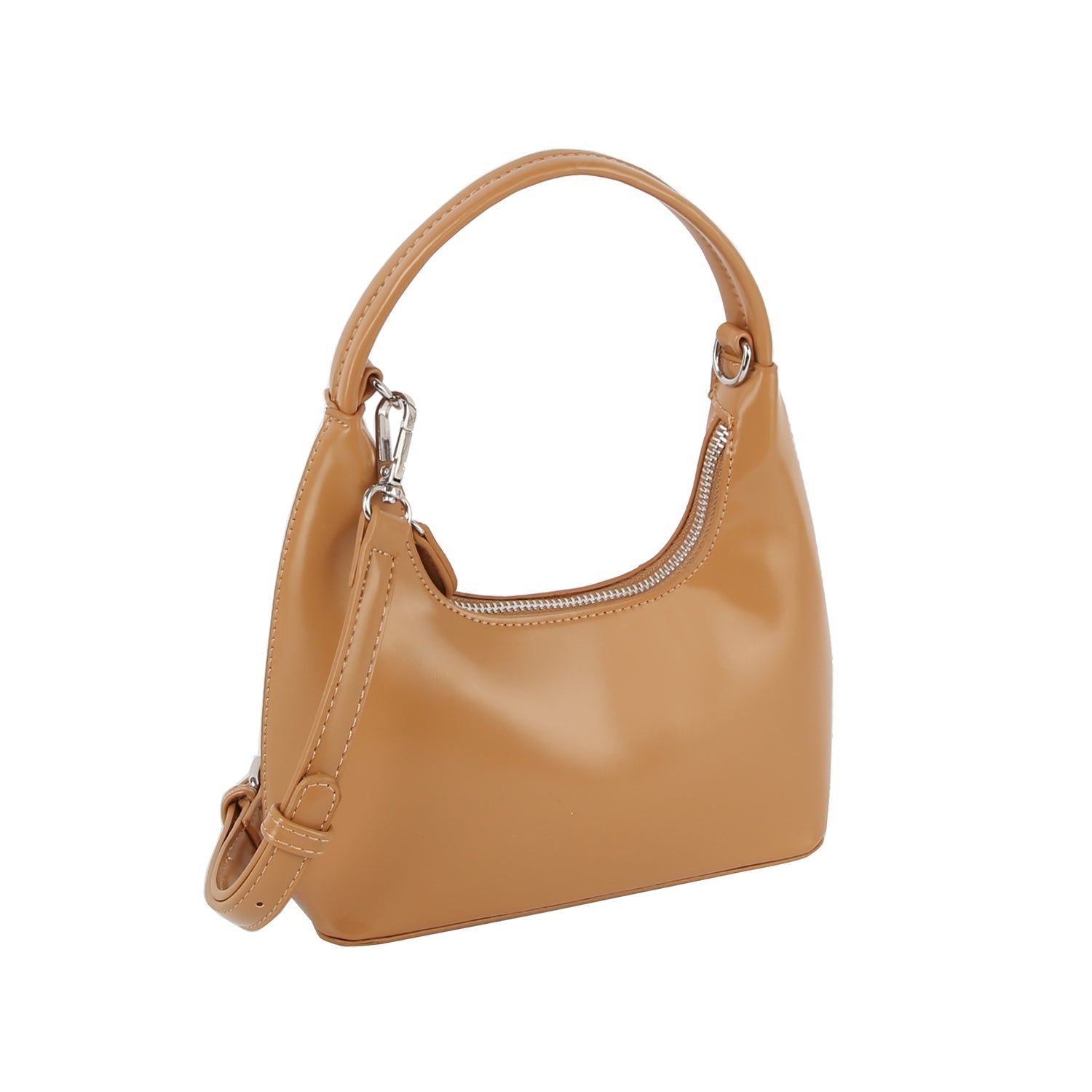 Shiny leather hobo with crossbody strap by Handbag Factory