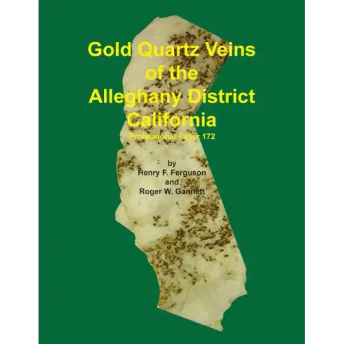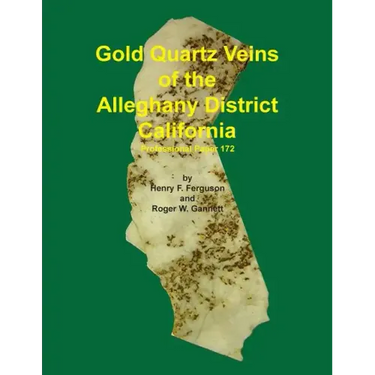 Gold Quartz Veins of the Alleghany District, California - by Henry Ferguson & Roger Gannett - Alleghany is located in the heart of the Mother lode country in Sierra County, CA and is probably the richest district in the Mother Lode. Most famous in this district is the 16 to One Mine which is still operating today on a limited basis. This district is famous for its pure white Quartz intertwined with Gold. World Class specimens as well as beautiful Jewelry have been made from this material. This publication Originally was published as USGS Professional Paper 172 in 1932. It covers the Geology, History and Production, and all of the Mines in the district in detail. Lots of maps and figures.
