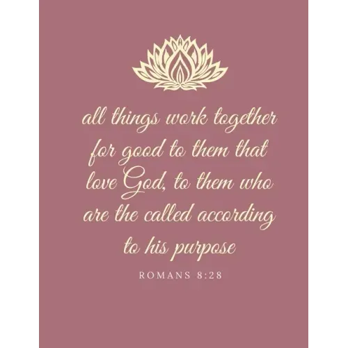 All things work together for good to them that love God, to them who are the called according to his purpose. Romans 8:28. Christian Journal To Write In. Blank Lined Gold Font Design Bible Verse Cover Composition Notebook (Large 8.5 x 11)This Christian Journal is great to use as a notebook, planner, organizer or diary. Perfect for note taking, creative writing, bible study, prayer and gratitude journaling. Write down prophetic affirmations about your life.Inspirational, motivational and devotional bible verse with Gold Font designLarge size 8.5 x 11 in (21.6 x 27.9 cm)120 blank lined white paper pages with flower transparent imagesPremium paperback with matte finish coverGreat gift ideas to family and friends for birthday, thanksgiving, Christmas & New YearThank you Enjoy.