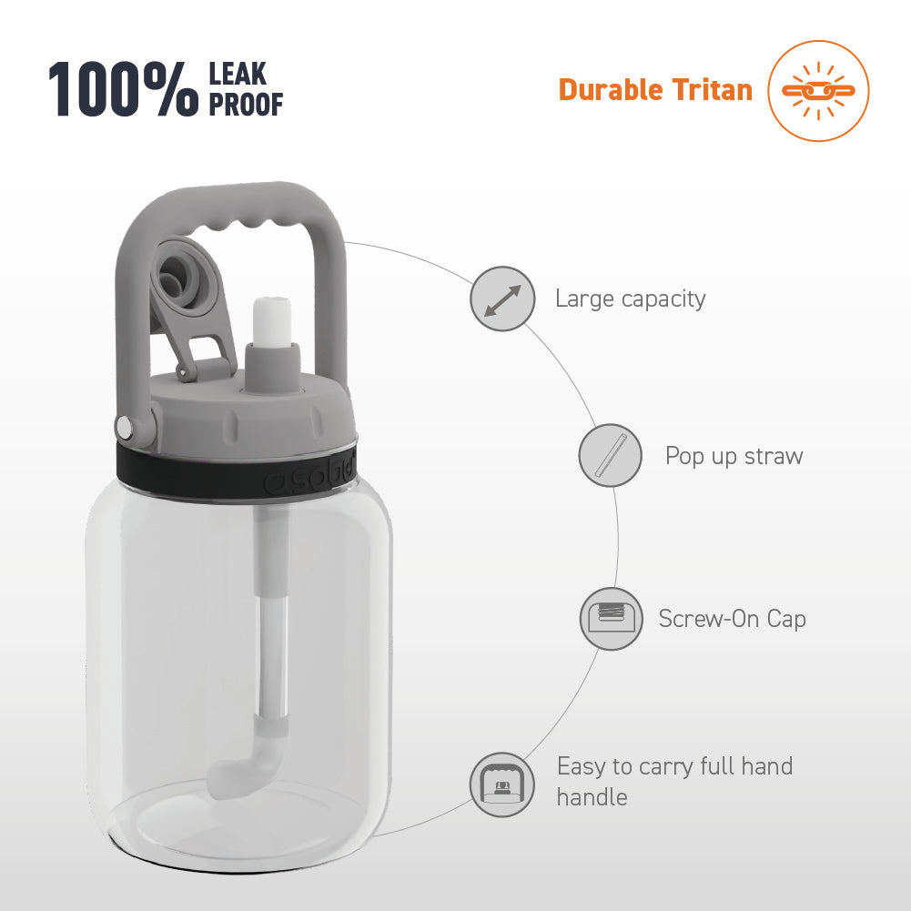 Constructed with lightweight, scratch-resistant BPA-free Durable Tritan, the Juggler is practically indestructible. It features an easy-to-carry handle and a pop up straw for your drinking convenience. Drink up!