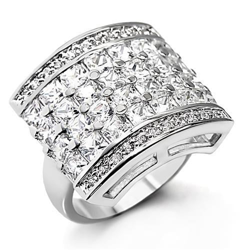 7X146 - Rhodium Brass Ring with AAA Grade CZ in Clear
