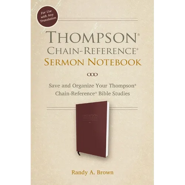If you are a Thompson(R) Chain-Reference(R) (TCR) Bible user, you know it's an exceptional tool for topical Bible study. This companion sermon notebook adds even more value by providing a place to record, organize, and simplify everything you learn from the many indexes, charts, and references contained in the TCR. The sermon notebook will guide you in a way that opens up the TCR chains so that you don't have to follow them exactly as they're printed, making verse selection more flexible.