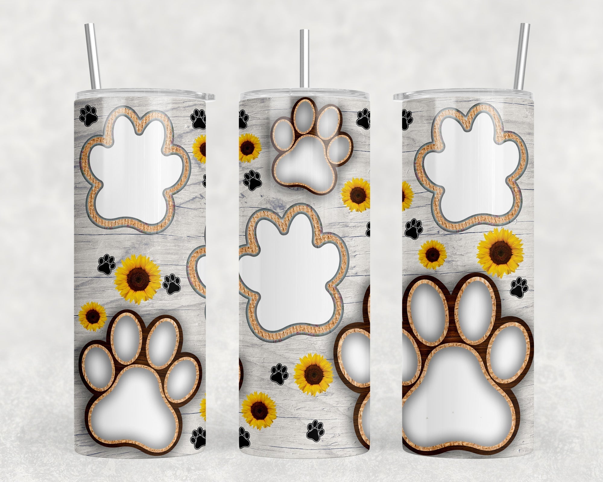 Paw Print Photo Insert - 20 oz Steel Skinny Tumbler - Optional Blue Tooth Speaker - Speaker Color will Vary by Rowdy Ridge Co