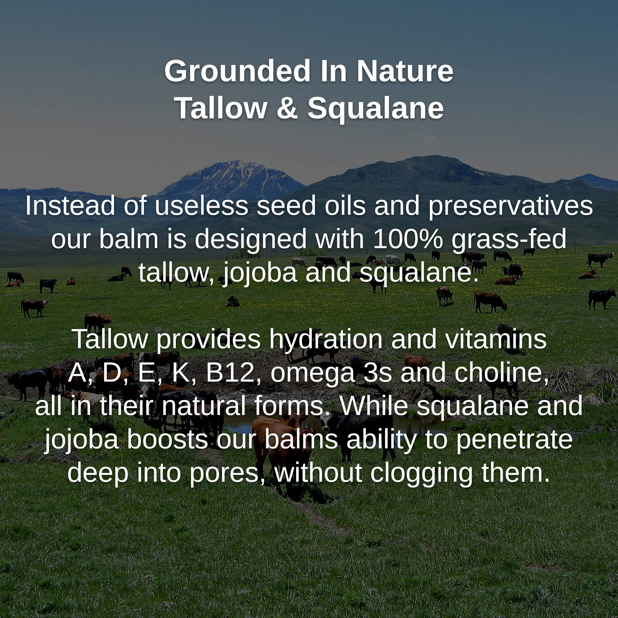 Organic Jojoba & Olive Squalane Oil enhance the power of tallow by reaching deep into our skin without any clogging.