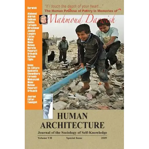 This 2009 (VII) special issue of Human Architecture: Journal of the Sociology of Self-Knowledge entitled "'If I touch the depths of your heart' The Human Promise of Poetry in Memories of Mahmoud Darwish," is a commemorative issue on the life and poetry of the late Palestinian poet, Mahmoud Darwish, co-edited by a group of UMass Boston faculty and alumni. Other than keynote opening statements, the special issue is comprised of a selected series of longer and shorter poems by Mahmoud Darwish, followed by commemorative poetry and essays/articles that directly or indirectly engage with Mahmoud Darwish's work and/or the subject matter of his passion and love, Palestine and human rights and dignity. Contributions include: Selections from the poetry of the late Mahmoud Darwish in two recently published collections: If I Were Another: Poems (Farrar, Straus and Giroux, 2009) translated by Fady Joudah, and another, A River Dies of Thirst: Journals (Archipelago, 2009), translated by Catherine Cobham; keynote contribution by UMass Boston Provost Winston Langley, keynote contribution of a poem by Martha Collins; and commemorative poetry or prose by the Palestinian-American poet, writer, and scholar Lisa Suhair Majaj, Amy Tighe, Dorothy Shubow Nelson, Robert Lipton, Joyce Peseroff, Shaari Neretin, and Jack Hirschman; included are also essays/articles by Leila Farsakh, Rajini Srikanth, Erica Mena, Kyleen Aldrich, Nadia Alahmed, and Patrick Sylvain. Co-editors of the special issue were (alphabetically) Anna D. Beckwith, Elora Chowdhury, Leila Farsakh, Askold Melnyczuk, Erica Mena, Dorothy Shubow Nelson, Joyce Peseroff, Rajini Srikanth, and Mohammad H. Tamdgidi (journal editor-in-chief). Human Architecture: Journal of the Sociology of Self-Knowledge is a publication of OKCIR: The Omar Khayyam Center for Integrative Research in Utopia, Mysticism, and Science (Utopystics). For more information about OKCIR and other issues in its journal's Edited Collection as well as Monograph and Translation series visit OKCIR's homepage.