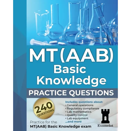 This book contains 240 multiple-choice questions to practice with, all carefully designed to reflect the real MT(AAB) Basic Knowledge Examination. Included in this book:- 240 multiple-choice questions, with answers and explanations To give you an idea of what the questions are like, below are five questions from the book: 1. The monitoring of laboratory processes to ensure the accuracy of test results is an aspect of: