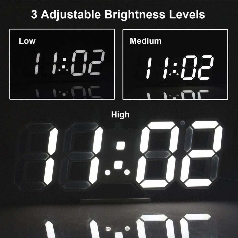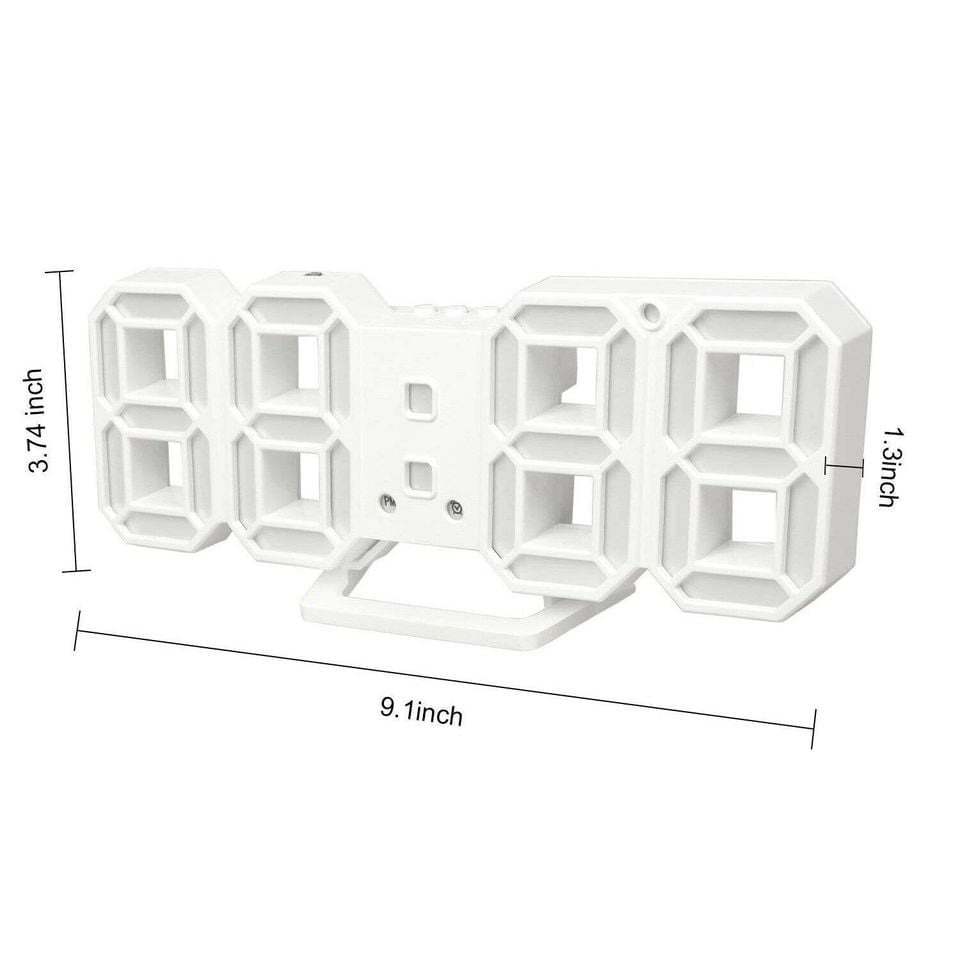 Digital 3D LED Wall/Desk Clock Alarm Big Digits Auto Brightness USB