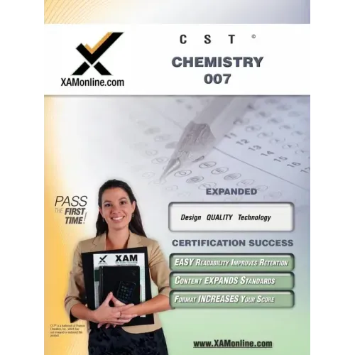 CST Chemistry 007 Includes 28 competencies/skills found on the CST Chemistry test and 125 sample-test questions. This guide, aligned specifically to standards prescribed by the New York Department of Education, covers the sub-areas of Foundations of Scientific Inquiry; Matter and Atomic Structure; Energy, Chemical Bonds, and Molecular Structure; Chemical Reactions; Stoichiometry and Solutions; and Interactions of Chemistry and the Environment.