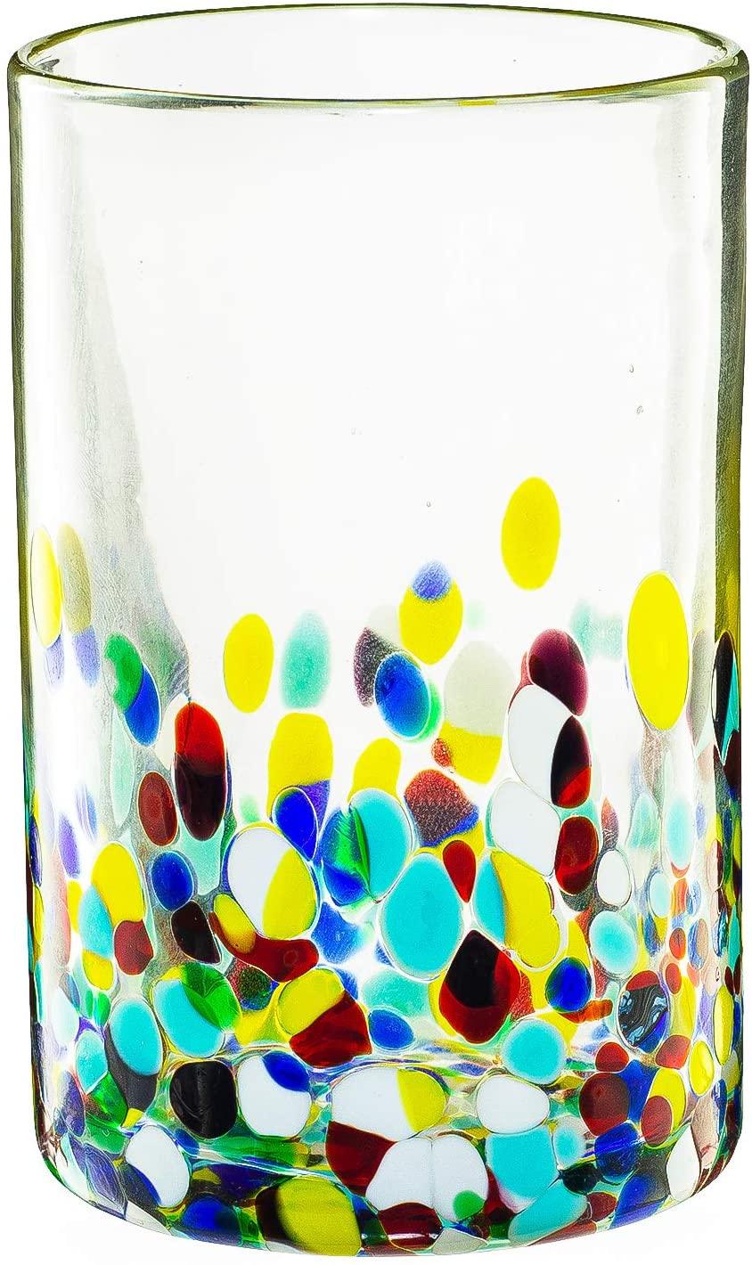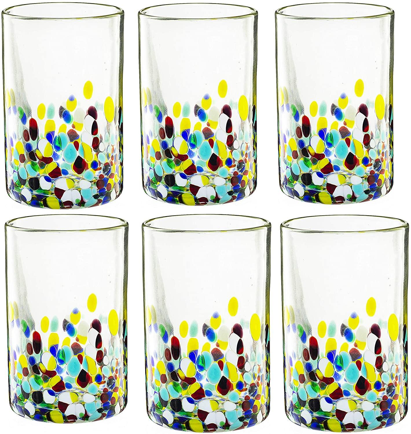 The Wine Savant Hand Blown Mexican Drinking Glasses and Pitcher – Set of 6 with Mexican Confetti Design (14 oz each) and Pitcher (84 Ounces) (Confetti) by The Wine Savant