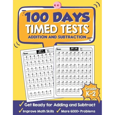 The Timed Tests Addition and Subtraction Practice Workbook with Answer Keys helps your kids Grade K-2 to improve and learning skills from beginner to master. - Everyday Practice Exercise with Timed Test for 100 days- 6000 Problems from Beginner to Master