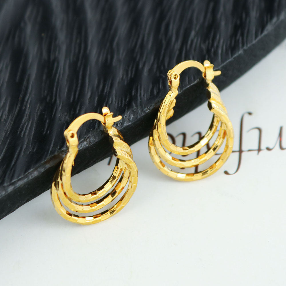 14k Diamond Cut Swirl Hoop Earrings