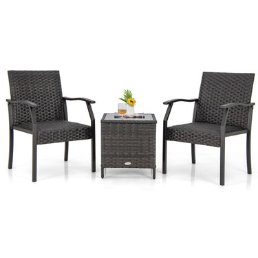 3 Piece Patio Wicker Chair Set with Quick Dry Foam Cushions All Weather