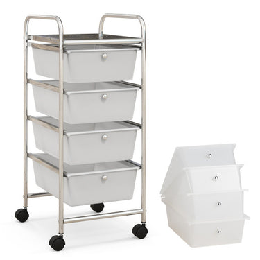 4-Drawer Cart Storage Bin Organizer Rolling with Plastic Drawers-White