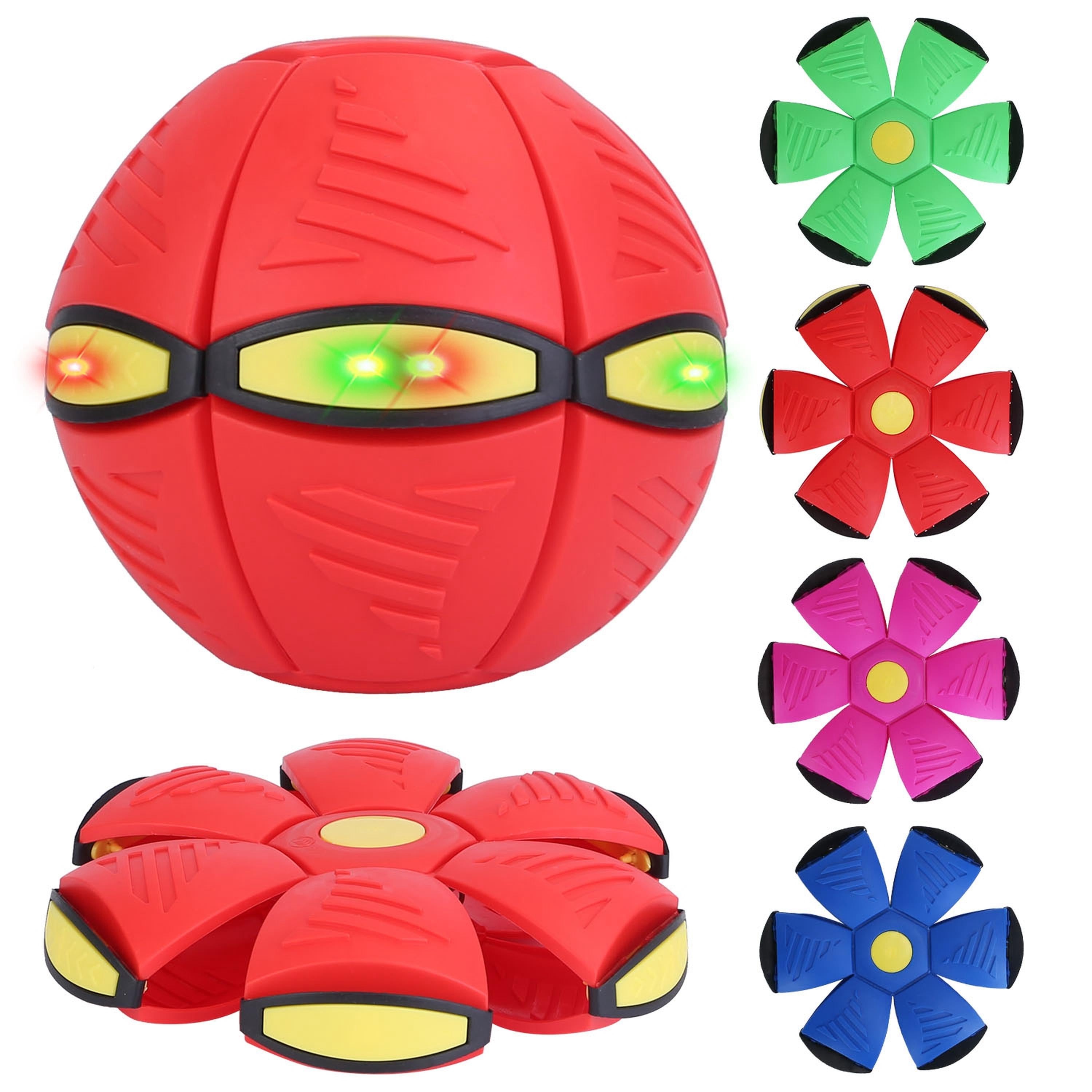 Our flying saucer ball is designed with 2 forms, can be easily switched between ball and flying saucer. You get 2 toys for the price of 1. Each ball adopts 6pcs LED beads, emit red and green flash lights. Made of durable and wear-resistant ABS material, remain intact even after repeatedly use. We provide multiple colors for you to freely choose according to your preference. Perfect gifts for you to promotes relationship with pets and children.