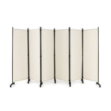 6 Panel 5.7 Feet Tall Rolling Room Divider on Wheels-White