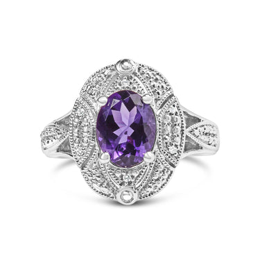 .925 Sterling Silver 9x7mm Oval Purple Amethyst and Round Diamond Accent Fashion Cocktail Ring (I-J Color, I1-I2 Clarity) by Infinite Jewels