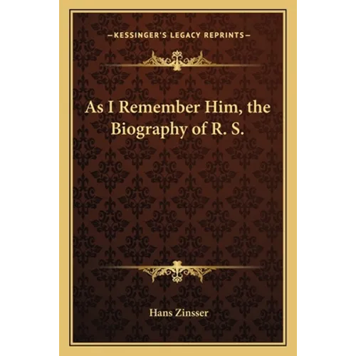 As I Remember Him is a biography written by Hans Zinsser about R.S., whose full name is not revealed in the book. The biography is a personal account of Zinsser's relationship with R.S., whom he met when he was a medical student at Columbia University. R.S. was a brilliant and eccentric man who had a profound impact on Zinsser's life and career.The book is divided into three parts. The first part describes Zinsser's early encounters with R.S. and their growing friendship. The second part focuses on R.S.'s life and achievements, including his work as a scientist and his contributions to the field of microbiology. The third and final part of the book deals with R.S.'s decline in health and eventual death, and the impact this had on Zinsser.Throughout the book, Zinsser paints a vivid portrait of R.S. as a complex and enigmatic figure. He describes R.S.'s idiosyncrasies, his intellectual brilliance, and his sometimes difficult personality. Zinsser also provides insights into R.S.'s scientific work, explaining the significance of his discoveries and the impact they had on the field of microbiology.As I Remember Him is a deeply personal and moving account of a remarkable individual, written by someone who knew him intimately. It offers a unique perspective on the life and work of a man whose contributions to science and medicine are still felt today.This scarce antiquarian book is a facsimile reprint of the old original and may contain some imperfections such as library marks and notations. Because we believe this work is culturally important, we have made it available as part of our commitment for protecting, preserving, and promoting the world's literature in affordable, high quality, modern editions, that are true to their original work.