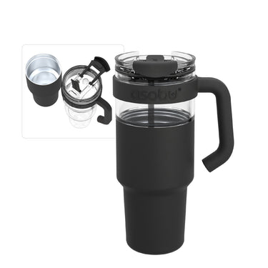 An X-large Tumbler Mug for Ice coffee or smoothie? Yes please! The Explorer joins our line of Clear-Insulation products that provides insulation for your cold beverage and features a see-through window (so you'll know when you need a refill). The Explorer also features an easy sip lid and a securely stored reusable straw, with triple layer design for your extra frosty iced macchiato. The dual function lid fits both the large tritan body and the insulated sleeve that can easily be removed for an on-the-go hot travel mug.Free shipping on all U.S. orders