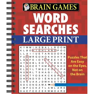- Brain Games Word Searches offers more than 80 word searches in a large-print format.