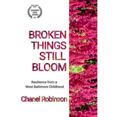 Broken Things Still Bloom is an authentic memoir of resilience, memory, and Black girlhood in West Baltimore during the 1970s and 1980s. Chanel Robinson came of age in the Gilmor Homes, a public housing project where childhood was shaped by both community strength and systemic struggle.