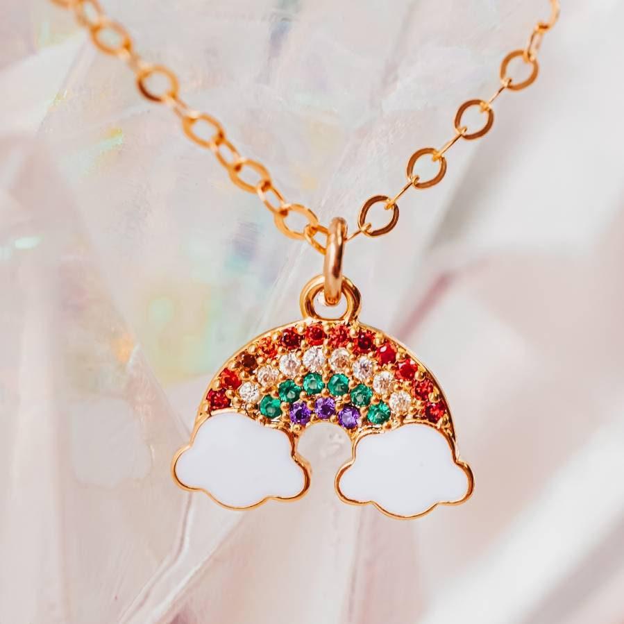 Crystal Rainbow Gold Necklace by Salt and Sparkle