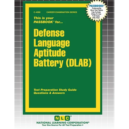 The Defense Language Aptitude Battery (DLAB) Passbook(R) prepares you for your test by allowing you to take practice exams in the subjects you need to study. It provides hundreds of questions and answers in the areas that will likely be covered on your upcoming exam, including but not limited to: spelling; word meaning; understanding and interpreting written material; foreign language spelling and meaning; writing skills; reading comprehension; and other related areas.