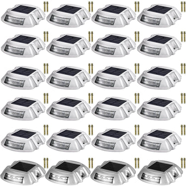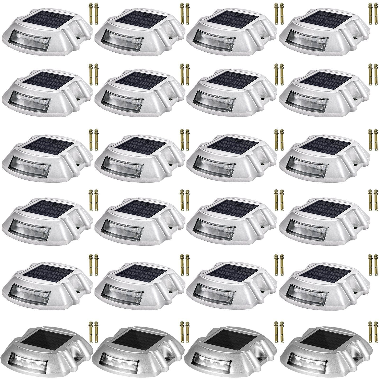 Driveway Lights 24-Pack Solar Driveway Lights Bright White with Screw Solar Deck Lights Outdoor Waterproof Wireless Dock Lights 6 LEDs for Path Warning Garden Walkway Sidewalk Steps