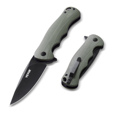 With D2 steel blade, our pocket knife easily meets various cutting needs, ideal for opening packages, prepping food, slicing rope, etc. The finger flipper allows for one-handed blade deployment, while the G10 handle offers an ergonomic grip. Serve as a self-defense tool if necessary.
