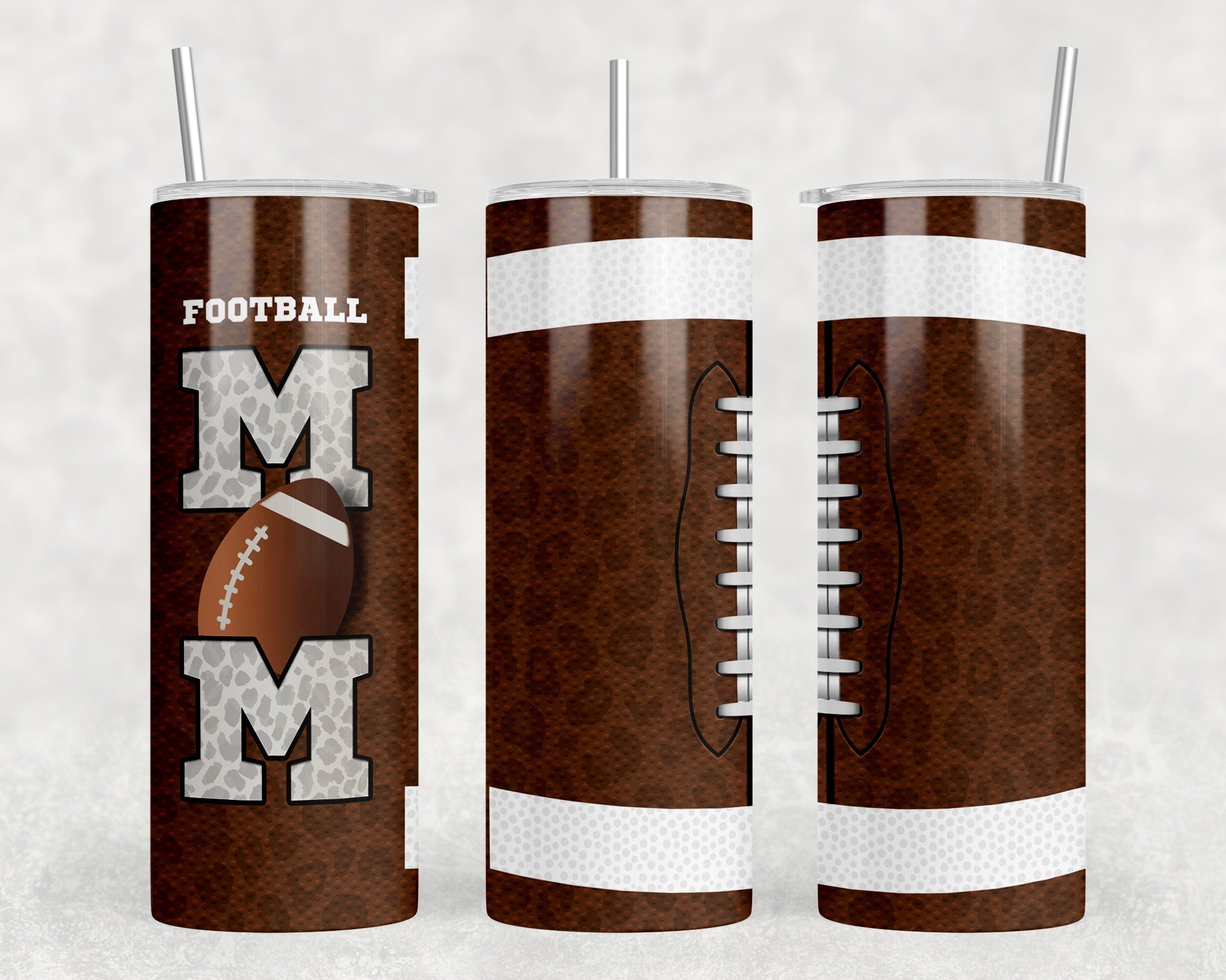 Football Mom Leopard Print - 20 oz Steel Skinny Tumbler - Optional Blue Tooth Speaker - Speaker Color will Vary by Rowdy Ridge Co