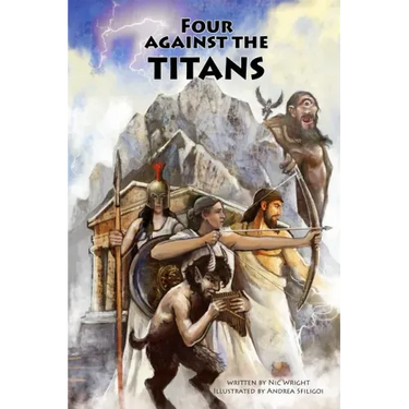 Olympos has fallen. Four Against the Titans is a pen and paper adventure game designed for solitaire or RPG-lite co-operative games. Set in ancient Greece in a time of myths and legends, players choose heroes from ten different character types to complete mighty quests and battle creatures such as centaurs, harpies and maenads, all in an attempt to defeat the titans and forestall the destruction of Greece.Based on the highly acclaimed Four Against Darkness series of dungeon delving adventures by Andrea Sfiligoi, Four Against the Titans is a standalone game. You don't require any other rule sets to play this game. All you need is a pencil, two dice, this book, and the luck of the gods