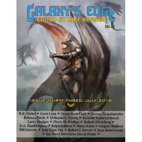 Galaxy's Edge is a Hugo-nominated bi-monthly magazine published by Phoenix Pick, the science fiction and fantasy imprint of Arc Manor, an award winning independent press based in Maryland. Each issue of the magazine has a mix of new and old stories, a serialization of a novel, columns by Robert J. Sawyer and Gregory Benford, book recommendations by Bill Fawcett and Jody Lynn Nye and an interview conducted by Joy Ward.