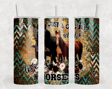 Girl Who Loves Horses - 20 oz Steel Skinny Tumbler - Optional Blue Tooth Speaker - Speaker Color will Vary by Rowdy Ridge Co