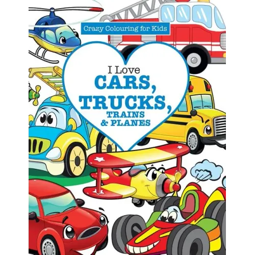 I Love Cars, Trucks, Trains & Planes! ( Crazy Colouring For Kids) - Paperback