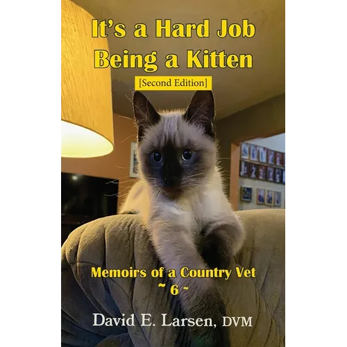 "You don't worry about this morning," I said. "We all learn as we go along in this life. If you have an emergency, call if you can, but come in if you can't. If you have any questions, we are here to help you out." "So then, just what was I seeing when I came home this morning?" Pat asked. "I mean, they really looked dead, or almost dead.""It's a hard job being a kitten," I said. "Kittens play hard, and then they sort of collapse and sleep however they hit the floor. You will likely see that again during the next few weeks. But next time, you will be prepared." This second edition of It's a Hard Job Being a Kitten, the sixth book in Dave Larsen's "Memoirs of a Country Vet series," presents the reader with more of his skillfully written accounts of his life as an Pacific Northwest country veterinarian in the 1970s and 1980s. For over forty years Dr. Larsen ran a one-vet clinic beginning in Enumclaw, Washington, then in Sweet Home, Oregon, where he provided his medical attention, expertise, and wisdom in often immediate life-and-death situations any time of the day and night, every day of the week.