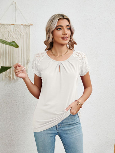 Lace Detail Round Neck Short Sleeve T-Shirt