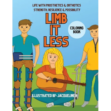 Limb-it-less is an inspiring coloring book that showcases people with prosthetics and orthotics living boldly-riding bikes, exploring the outdoors, playing sports, making art, helping others, and more. Each illustration is a reminder that disability does not define a person; resilience, joy, and possibility do.