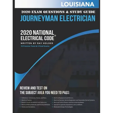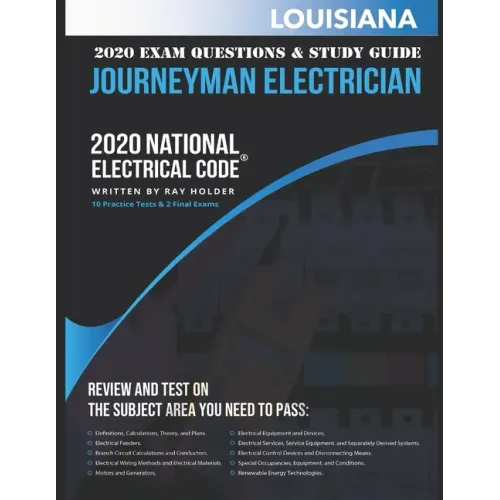 The Louisiana 2020 Journeyman study guide will help you prepare for the exam by providing 12 practice open book exams and 2 Final Closed Book Exams. Includes Louisiana License Forms and Sample Applications. This book also covers most topics that are included on all Journeyman Electricians exams such as conductor sizing and protection, motors, transformers, voltage drop, over-current protection and residential and commercial load calculations. The text contains the most widely used electrical calculations and formulas the reader needs to pass the Journeyman electrical competency exam.About the AuthorRay Holder has worked in the electrical industry for more than 40 years as an apprentice, journeyman, master, field engineer, estimator, business manager, contractor, inspector, and instructor. He is a graduate of Texas State University and holds a Bachelor of Science Degree in Occupational Education. A certified instructor of electrical trades, he has been awarded a lifetime teaching certificate from the Texas Education Agency in the field of Vocational Education. Mr. Holder has taught thousands of students at Austin Community College; Austin Texas Odessa College at Odessa, Texas; Technical-Vocational Institute of Albuquerque, New Mexico; Howard College at San Angelo, Texas, and in the public school systems in Fort Worth and San Antonio, Texas. He is currently Director of Education for Electrical Seminars, Inc. of San Marcos, Texas. Mr. Holder is an active member of the National Fire Protection Association, International Association of Electrical Inspectors, and the International Brotherhood of Electrical Workers.