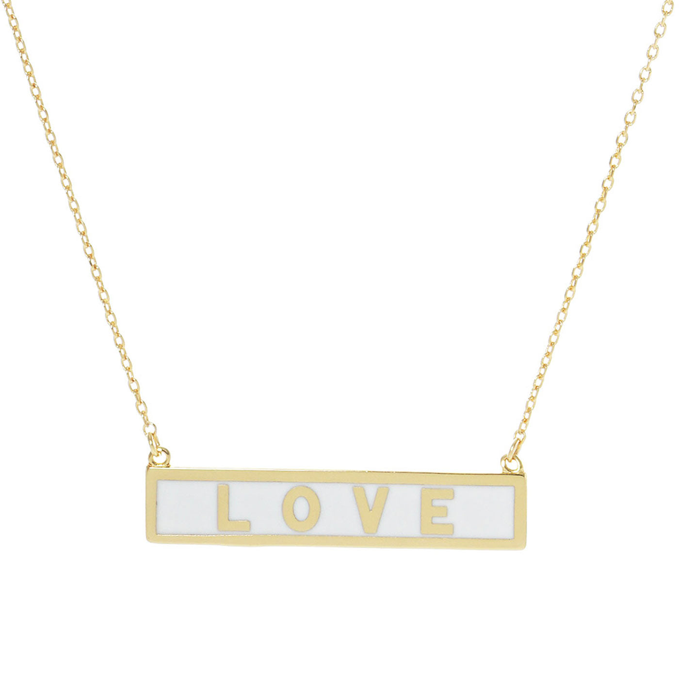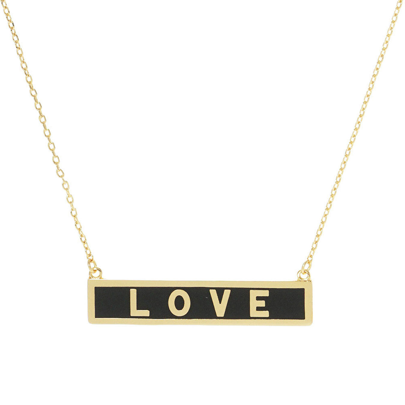 • LOVE Gold Dipped Enamel Rectangle Message Pendant Necklace