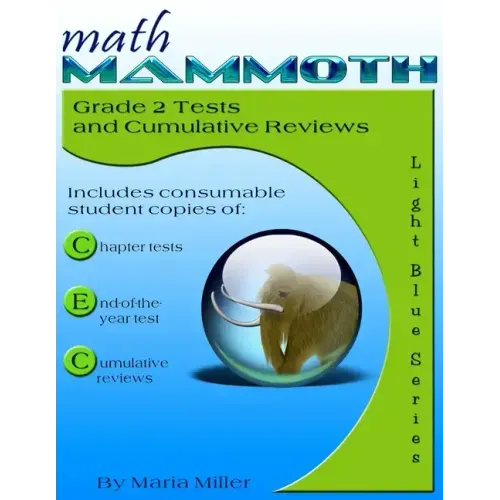 This book has gray-scale interior pages. It includes chapter tests, end-of-year test, and cumulative reviews for Math Mammoth grade 2 complete curriculum.