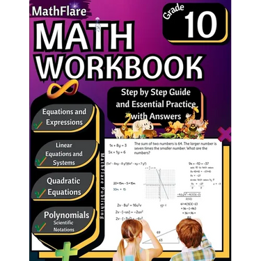 MathFlare - Math Workbook 10th Grade: Math Workbook Grade 10: Equations and Expressions, Linear Equations, System of Equations, Quadratic Equations, P - Paperback
