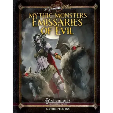 The Best of the Very Worst Emissaries of Evil incorporates evil outsiders of every kind, from malevolent masterminds like night hags to black-hearted hunters like yeth hounds. Some evil outsiders are subtle and stealthy stalkes, like the fearsome hellcat or the mirror-master soulsliver. There are fiend-tainted footsoldiers like the urdefhan, and hideous misshapen monstrosities like the vargouilles, hideous flying heads seeking only to plant their tainted kiss and sprout more of their monstrous kin. Many of these independent evil outsiders prowl the Lower Planes acknowledging no master but themselves and wielding power through puppets by clever manipulation, like the serpent-shrouded dorvae, while others serve otherworldly overlords of other planes, as the awful ankou serve the mightiest rulers of the Fey Realms as punishers and assassins. Many evil creatures call upon the powers of darkness, like the shadow mastiff, but others indulge in the corrupted power of light to cloak their horrid hearts in the glow of heaven's light, like the shining child. There are evil outsiders that seem to mortals no more than twisted and strange animalistic beasts, like the stilt-legged achaierai, though their flightless ferocity belies their cruel cleverness. The ultimate emissary of evil, however, is the distilled immortal ichor of a dead god of deepest vileness, which may eternal lie until with strange eons even the death of a god may die. As if these were not enough, guest contributor Sean K Reynolds adds the brand-new maldonado, a body-jumping fiend of possession created from the warped and twisted soul of a fallen angel, now living a vampiric half-life riding the bodies of mortals until their souls are consumed. A dozen and one vile creatures of every description lie within, from CR 3 to 21, and if all these statistics were not sufficient to sate your appetite for evil, we bring you a chilling tale of corruption, captivity, and maternal malevolence to set the proper mood for using these Emissaries of Evil. The Mythic Monsters series from Legendary Games sets aside the rich story and background that is our trademark, because it is focused on absolute crunch, and there it absolutely lives up our highest standards of innovative layout, beautiful aesthetics, and excellence in design that is second to none. We hope you enjoy using it as much as we enjoyed making it. Game on