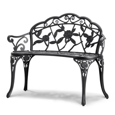 The intricately designed floral pattern on the backrest adds a touch of natural beauty to the outdoor garden bench. Perfect for gardens, parks, patios, or porches, our bench provides a comfortable resting spot for you, your family, and friends to share wonderful moments.
