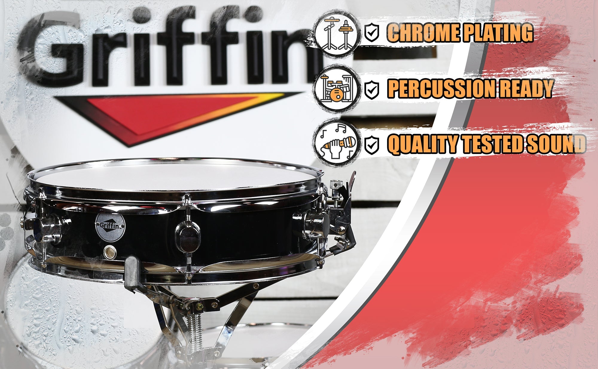 Piccolo Snare Drum 13" x 3.5" by GRIFFIN - 100% Poplar Wood Shell with Black PVC & White Coated Drum Head - Drummers Acoustic Marching Kit Percussion by GeekStands.com