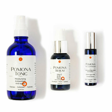 Pomona Beauty Pack es un set de 3 piezas. Diseñado con ingredientes sensacionales provenientes de plantas y frutas ricas en vitamina C que ayudan a reafirmar y aclarar el tono de la piel, mientras promueven la producción de colágeno para una piel vibrante, brillante y saludable.