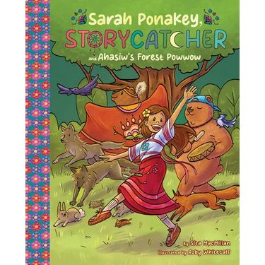 Accompanied by a life-sized Âhâsiw in his beautiful regalia, Sarah watches in excitement as a chipmunk emcees, and bears play the host drum at her first ever powwow. The more she sees, the more her confidence grows. As she joins in the celebration, Sarah discovers that she can connect to her Cree culture no matter where she is. Her Kôhkom's going to love this story! Âhâsiw's Forest Powwow, the first book from debut children's author Sita MacMillan, features Cree words throughout the story and a note to the reader. Azby Whitecalf's dynamic illustrations bring life to this warm, charming, and funny introduction to Sarah Ponakey, the storycatcher.