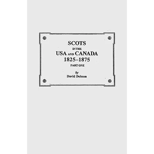 For this book, David Dobson, who has previously published the most extensive lists of Scottish immigrants to America during the colonial and early Federal periods in print, extends his coverage of Scottish immigration to the period 1825-1875. The Scottish expatriates identified by the compiler are arranged alphabetically and invariably give, besides the individual's full name, place of residence (country, state/province, or city), an identifying date, and the source of the information. In addition, many of the entries indicate the individual's date of birth, father's name and occupation or place of residence, spouse, or the name of the vessel upon which he arrived. In all Mr. Dobson has culled information on upwards of 2,000 Scotsmen who were residing in North America during the early Victorian era.